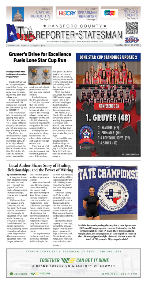 For over a century, the Hansford Reporter-Statesman and Sherman County Gazette have told the...